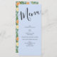 Peach Light Blue Peony & Rose Blumenmenü Menükarte