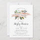 Elegante Blumenduschen mit Pachy-Rosa-Blume und grüne Blätter umrahmen ein rot-rosa Banner, das "Brautparty" liest. Personalisieren Sie Ihre Brautparty-Details in einem schicken Mix aus Block-, Serif- und Kalligraphie-Schriften.