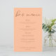 Peach ist die neue Trendfarbe für Sommerhochzeiten. Unser Bar mit süßen Pfirsichen bietet Ihnen eine elegante, hellbraune Schrift, in der Sie Ihre Getränke für eine angesagte, minimalistische Veranstaltung am Nachmittag detailliert darlegen können. Fügen Sie Ihre Weinauswahl, Bier, Spirituosen und andere Spezialgetränke auf dieser Liste.