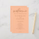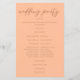 Peach ist die neue Trendfarbe für Sommerveranstaltungen. Unser Hochzeitsprogramm mit süßem Pfirsichpfirsichen bietet eine elegante, hellbraune Schrift für ein trendiges, minimalistisches Ereignis am Nachmittag für eine weibliche Braut, die Lieben hat, aktuell und modern bleibe.