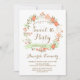 Whimsical 16 . Geburtstag Geburtstagsfeier Einladung mit Pfirsich und Minze Blumenkranz.
