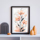 Dieser elegante Blumendruck besticht durch zarte pfirsichfarbene Blume, die mit schwarzen Blätter und sanften Aquarelltexturen verwoben sind. Die geometrischen Linienakzente verleihen dem Hotel eine moderne Drehung, die sich perfekt für eine zeitgenössische, minimalistische oder skandinavisch inspirierte Dekoration eignet. Ideal für Wohn-, Schlafzimmer oder Büroräume auf der Suche nach einer ruhigen und anmutigen Touch.