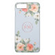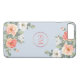 Peach Rose Dusty Blue Floral Monogram Case-Mate iPhone Hülle