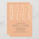 Niedliche rustikale Lichterketten-Verlobungsfeier für Ihre moderne, aber Vintage Feier in der Scheune, Ranch oder Lodge. Vollständig anpassbare Pfirsicheinladung - Sie können den Stil des Schriftartes ändern, die Farbe ändern, Textzeilen verschieben und auch auf der Rückseite schreiben. Der Hintergrund hat eine Holzstruktur und kleine, blinkende Lichter. Der Schriftart-Stil ist niedlich modern und lässig!
