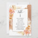 Aidez vos invités à trouver leur table avec cette élégante carte moderne de plan de séjour avec les noms des invités avec la pêche exquise et crème fleurie et tache d'aquarelle en terre cuite. Cartes recto verso pour que les clients puissent regarder les deux, avant ou arrière pour voir leurs noms dans des affichages suspendus. Libérez de l'espace tout autour en vous donnant la liberté d'utiliser des clips ou un trou de perforation pour accrocher des écrans, ou d'utiliser le support/cadre de table. Cadre aux délicats détails floraux dans un beau mélange de pêche, d'orange, de rose vif, de corail poussiéreux et de champagne crème. Détails de calligraphie manuscrite moderne. Plusieurs options de couleur. Ayez tous les numéros de table dans la même couleur ou mélangez les couleurs selon le thème de couleur de votre événement. Une partie de notre collection "Peach Floral Delight with Terracotta Rust" avec une variété de produits de coordination disponibles, y compris des cartes de numéro de table et des menus. Visitez la collection entière à l'adresse suivante : https://www.zazzle.com/collections/peach_floral_delight_and_terracotta-119586567178093068