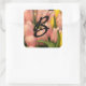 Peach Tulip Monogramm Design Quadratischer Aufkleber
