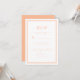 Diese einfache und elegante Hochzeitskarte mit RSVP-Gehäuse zeichnet sich durch ein minimalistisches Design mit einem doppelten Rahmen in zeitgenössischem Pfirsich auf einem knusprigen weißen Hintergrund aus. Personalisieren Sie mit dem Datum Ihrer Hochzeit und ausgewählte Menüpunkte. Stellen zur Verfügung, an denen Ihr Gast Namen und Antworten für eine Rückantwort hinzufügen kann. Buchstaben und Skripte sind in passendem Pfirsich. Die Rückseite der Karte ist passend zum soliden Pfirsich.