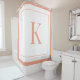 peach and white monogram initial shower curtain .modern stylish white shower curtain.