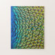 Nahen von den farbenfrohen Federn auf dem Nacken eines Pfauenhalses, natürlich in einem kunstvollen Deko-Muster angeordnet.