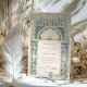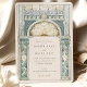 Diese atemberaubende Jugendstil-Hochzeitseinladung besticht durch eine aufwändige, Vintag inspirierte Abbildung mit zarten Blumendetails und einem eleganten Pfauenmotiv. Der wunderschön verzierte Rahmen, inspiriert von den Dekorationskunst des frühen 20. Jahrhunderts, zeigt weiche Grüntöne, warme Golden und erdige Töne und schafft so eine zeitlose und raffinierte Ästhetik. Die Vorderseite der Einladung präsentiert die Namen und Hochzeitsdetails elegant in einem raffinierten Serif-Schriftart und harmoniert perfekt mit den detaillierten botanischen und architektonischen Elementen. Das luxuriöse Design setzt sich fort und macht diese Einladung zu einem echten Kunstwerk: Ideal für Vintage, botanische oder klassische Hochzeiten, die ein Gefühl von Pracht und Romantik hervorrufen. Diese Einladung, die auf hochwertigem Papier mit individuell anpassbaren Optionen gedruckt wurde, ist ideal für Paare, die eine einzigartige, künstlerische und zeitlose Hochzeitsaufstellungssuite suchen.