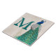 Peacock Bird Feather Aquamarin Türkis Vintag Viktorianisch Monogram Initiativ Decorative Display Tile Personalisiert