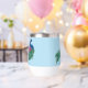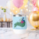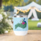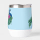 Un paon avec une fleur de lotus fuchsia et du henné en toile de fond bleu clair