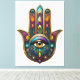 Peacock Colors Hamsa w/ Gold Third Eye Leinwanddruck
