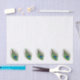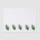 A white tissue paper with five vibrant peacock feather eyes that form a border along one side.