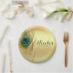 Peacock Feather Gold Exotic Boho Chic Custom Party Teller. Machen Sie den Hintergrund zu einer beliebigen Farbe. Matching-Elemente verfügbar. Anpassen mit jedem Text.