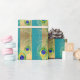 Dieses wunderschöne handwasserfarbene Kunstwerk wurde von Audrey Jeanne Roberts gemalt. Die Frontabdeckung hat einen aquamarinen, blauen Hintergrund, eine exquisit detaillierte Handgemälde, wirbelnde Pfauenfeder mit grafisch gestalteten Juwelen über einem goldenen Rahmen. HINWEIS: Dies ist ein flaches, bedrucktes Design mit dem Aussehen dreidimensionaler Aspekte. Es gibt keine erhöhten Schichten oder tatsächliches Gold in der Konstruktion.