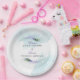 Pfauenfeder. Diese eleganten, lila Pfauenfedern-Teller sind mit zwei Pfauenfedern gestaltet, die um eine elegante Typografie und einen Aquarellhintergrund wickeln. Personalisieren Sie dieses Design mit Ihrem Namen, Hochzeitstag und jeder anderen benutzerdefinierten Nachricht, die Sie einschließen möchten! Die Hintergrundfarbe ist Set zu Weiß, Sie können jedoch eine Füllfarbe Ihrer Wahl wählen.