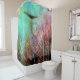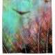 Pfauenfedern vor einem pastellfarbenen Aqua, rosa und gelben Hintergrund sehen auf diesem Duschvorhang phantastisch aus