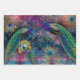 Peacock Elegant Feathers Glitzer Pink für Decoupage oder Geschenkverpackung. Es gibt 3 Blätter, ein Bild wird rechts umkehrt, um verlassen für Schranktüren usw. (einige kleine Handschriftelemente werden rückwärts sein). Ein Vintages und modernes Kunstgemälde aus fantasievollen und bunten Fantasy-Gemälden mit eleganten Peacocks in fetten Farbtönen über glitzerndem Pfauenfarbenhintergrund mit goldenen Glitzer Peacock Federn, Blume, funkelnden Stern-Kulissen. Die Kunst wurde grafisch von Audrey Jeanne Roberts entworfen, einer international anerkannten Künstlerin und Designerin. Urheberrecht.