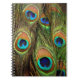 Ein Peacock Feathers Foto-Notebook mit einem Foto von einigen detaillierten Pfauenfedern.