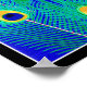 Kunstwerk, das das Pfauenfederdesign in Blau, Grün und Gold darstellt.