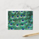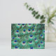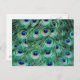 Nahes Foto von grünen und blauen Pfauenfedern.
