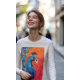 Ich zeichnete meinen Lieblings Pfauenfreund mit all diesen phantastischen Farben - Blau, Orange, Rot und mehr! Der helle Hintergrund macht ihn noch hübscher. Seine Federn sind so hübsch, besonders die großen schwarzen auf seinem Kopf, die mich an eine Krone für Könige denken lassen! Wenn wir dieses Shirt zusammen tragen, ist es, als würden wir jedem zeigen, wie phantastische Pfauen sein können: tapfer, aber sanft - genau wie wir! 🌈 🎨