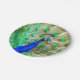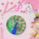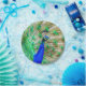 Dieses Design zeigt ein Bild eines wunderschönen Pfaues mit einem hellblauen Körper und farbenfrohen Absturz. Die Vögel sind auf dem indischen Subkontinent und Südostasien beheimatet; es gibt auch eine afrikanische Spezies, den Kongo-Pfau. Sie sind bekannt für ihre lauten Rufe und ihren extravaganten Absturz.