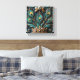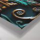 A crown with peacock feathers, gold and turquoise colors, intricate details, ornate design, symmetrical composition, royal emblem, dark teal background, vintage style, decorative art.