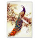 Die wunderschöne Wildtierszene bietet einen majestätischen Pfau in aquamarinen, blauen, lila und orangefarbenen Farbtönen auf einem mit Blume beladenen Baumzweig. Soft Creme Hintergrund Diese schöne Vintage Vogelkunst wird auf vielen Gegenständen in meinem Geschäft angeboten.