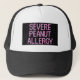 Kaum, sich zu wiederholen? Beunruhigt werden Sie bei einem Baseballspiel oder einem anderen Sportereignis, bei dem immer noch Erdnüsse überall geworfen werden, nicht sicher sein können? Dieser Hut ist eine großartige Möglichkeit, um Menschen um einen lassen, zu wissen, dass man eine schwere Allergie an Orten hat, wo man sie nicht einfach überall ankündigen kann, sondern will, sie nicht auf dem Shirt drucken zu lassen. Sie können den Hut bei Eintritt der Situation aufsetzen/entfernen, während noch Gefühl stilvoll.