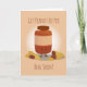 Eine Grußkarte mit einem Glas Erdnussbutter, umgeben von Erdnüssen. Die Worte sagen "Get Peanut Better Real Balon!" auf der Vorderseite und drücken die Liebe auf der Innenseite der Karte aus. Alle Wörter können angepasst werden.