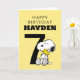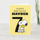 Feiern Sie den Geburtstag Ihres Kindes mit dieser super niedlichen Snoopy-Karte. Personalisieren Sie Ihre persönlichen Daten mit dem Namen und Alter Ihres Kindes.