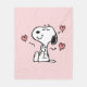 Snuggle season just got a major upgrade! This ultra-plush fleece blanket features Snoopy in his sweetest moment yet—sitting contentedly with his paws clasped together and a happy smile, while pink hearts float around him. The soft pastel pink background adds a dreamy pop of color to your room, making it the perfect companion for movie marathons, lazy Sundays, or whenever you need a little extra love. It’s not just a blanket; it’s a mood.