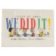 Celebrate graduation with humor and personality with this playful Peanuts-inspired design that perfectly captures the classroom experience. Featuring a lineup of familiar characters sitting at their desks, each reacting in their own unique way, this design pairs the bold “We Did It!” message with the funny phrase “some better than others…” for a lighthearted take on graduation day. The colorful lettering adds a fun pop against the clean background, while the classic illustration style brings charm and nostalgia. This design is perfect for grads who appreciate a little humor along with their big achievement.