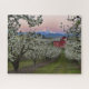 Sunrise light on Mount Hood Seen from a pear orchard in the Hood River Valley of Oregon. The flowering trees leading to the picturesque red barn and mountain are what made this scene work for me. Copyright 2014 Tom Schwabel, All Rights Reserved.