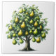 Eine Keramik-Kachel zeigt eine bezaubernde Abbildung eines Birnbaums mit üppig grünen Blätter und reifen, goldenen Birnen, die an den Ästen hängen. Das Design spiegelt die natürliche Eleganz des Baumes wider und bringt eine Touch von Obstgarten-Stille in jede Umgebung.