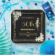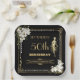 Personalisieren Sie diese Vintage Kunst Deko Blumengattung Great Gatsby Roaring 20er Themenpapier Teller einfach und schnell, einfach drücken Sie die Schaltfläche Anpassen, um den Stil und die Platzierung des Textes weiter zu ordnen und zu formatieren. Mit einem schicken Kunstwerk Deko Rahmen, Elfenbeinorchidee und Lilienblüte, glitzernde Perlen und Schwarz/Gold Farbschema. Passende Artikel im Shop erhältlich! c) das Happy Cat Studio.