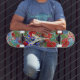 Skateboard. Deck Typ: 8 1/2" Skateboard Deck, Perleneiffelturm auf original blumengeschmückter Collage.