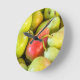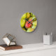 Wall clock with an image of pears all together in a crate view from up close. Customisable.