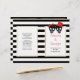 Couple crâne avec un arc rouge la mariée et le casquette rouge le marié, et rayures noir et blanc moderne rouge Halloween plié cérémonie mariage et programme de fête. Il y a des cadres blancs avec contour doré avec votre texte.