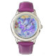 Kinderuhr aus Edelstahluhr mit lila Lederarmband