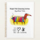 Behalt mit unserem spielerischen Dog Grooming-Planer eine Übersicht der Termine. Mit einem lustigen, kartoonischen Design einer Dackel in fröhlichen, hellen Farben, ist dieser Planer ein fröhlicher Weg, um Ihr Geschäft zu fördern. Seine auffälligen Farben und niedliche Grafiken werden von den Kunden geschätzt.