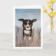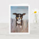 Un chien amical jouant dans l'herbe haute est un excellent moyen de dire bonjour. Transférez facilement cette peinture acrylique sur d'autres cartes et cadeaux. Les couleurs bleue, beige, marron et caramel sont belles en tant que carte de remerciement, carte d'anniversaire ou simplement pour votre papeterie personnelle.