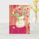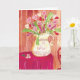 Cette carte fantaisiste représentant un bouquet de coeurs est une belle surprise dans la boîte aux lettres. L'image est une peinture à l'aquarelle multicolore d'un pichet débordant de fleurs en forme de coeur, d'une table recouverte d'un tissu rouge, d'un papier peint à coeurs et d'une chaise en bois en forme de coeur. À l'intérieur : Vierge AVIS : "Une carte si belle. Les couleurs sont si époustouflantes."