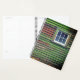 Ce planificateur a une photo d'une fenêtre et une maison avec de la vieille peinture verte dessus.