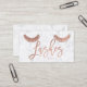 Ein elegantes modernes, stilvolles kundenspezifisches Logo peitscht Geschäftskarte mit eleganter Skriptbeschriftungs-Arttypographie in der Imitat-Rosen-Goldfolie auf einem trendy und eleganten weißen Marmorhintergrund. Addieren Sie Ihre Sozialmedien.