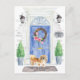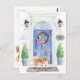 Mit unserer stilvollen Ankündigung kündigen Sie Ihre neue Adresse an: Pekingese, blaue Haustür, Begrüßungstafel, Schiefer-Schild, Topiaries und ein blumengeschmücktes Set auf grauem Backstein.
