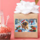 Ein flauschiger Pekingese läuft fröhlich durch die schneebedeckte Landschaft und trägt einen festlichen roten Weihnachtshut. Diese charmante Winterlandschaft hebt die authentische und spielerische Persönlichkeit der Rasse hervor, die die Wärme und den Geist der Urlaubssaison einfängt. Ein reizvolles Design voller festlichen Beifall.