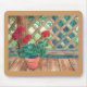 Schönes Aquarell einer Ansicht von meiner Plattform, die eine rote Pelargonie kennzeichnet. Auch einige Produkte haben lustige Gärtner-Halteseile! Vervollkommnen Sie für die Kunstliebhaber und -Gärtner, die gleich sind!